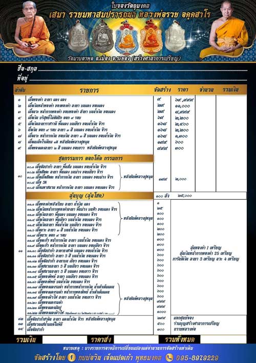 รายการ 6.เนื้อเงินบริสุทธิ์ ลงยาจีวร ตอก ๙ รอบ ราคาจอง 2,200.-บาท มียอด= สอบถาม