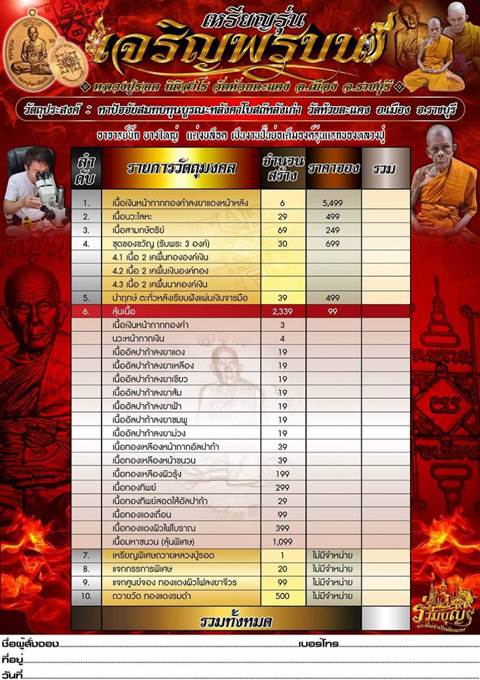 รายการ 6.ลุ้นเนื้อ ราคาจอง 99.-บาท มียอด = 100