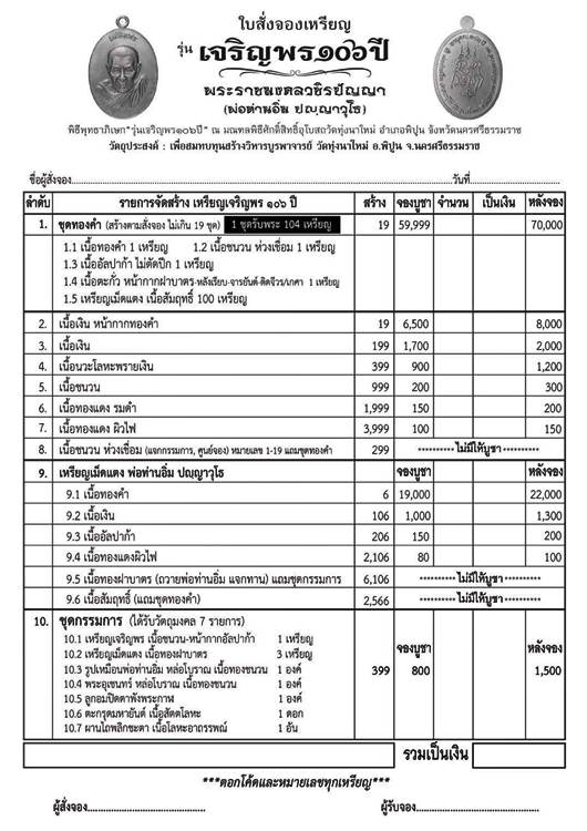 รายการ 10.ชุดกรรมการ (รับพระ 7 เหรียญ) ราคาจอง 800.-บาท มียอด = 10
