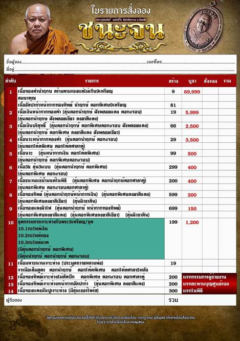 รายการ 7.เนื้อมหาชนวนแช่น้ำมนต์ในพิธี (ลุ้น) ราคาจอง 400.-บาท มียอด = 10