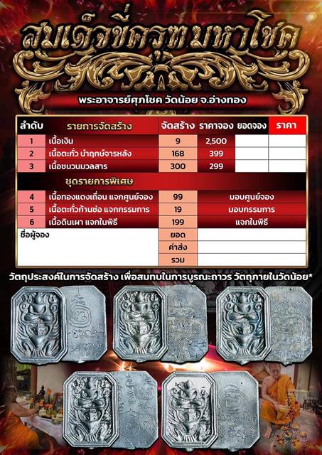 รายการ 2.เนื้อตะ กั่วนำฤกษ์ จารหลัง ราคาจอง 399.-บาท มียอด = 5