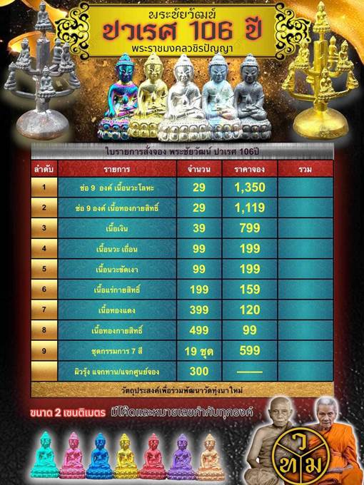 รายการ 1.ช่อ 9 องค์ เนื้อนวโลหะ ราคาจอง 1,350.-บาท มียอด = สอบถาม