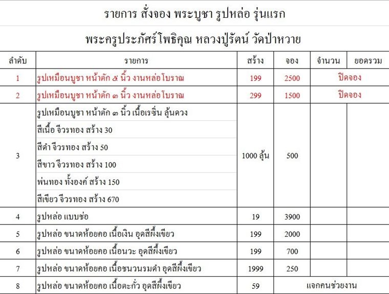 *** มีรายการเปิดจอง ดังนี้ครับ