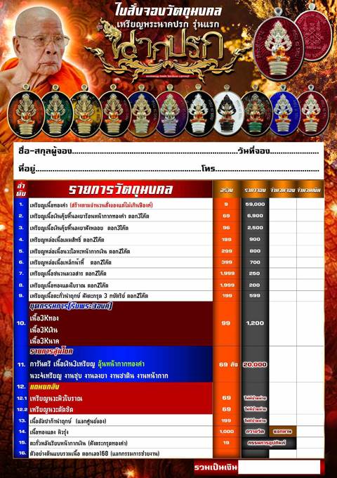รายการ 7.เนื้อชนวนมวลสาร ตอก 2 โคีต ราคาจอง 250.-บาท มียอด = 50