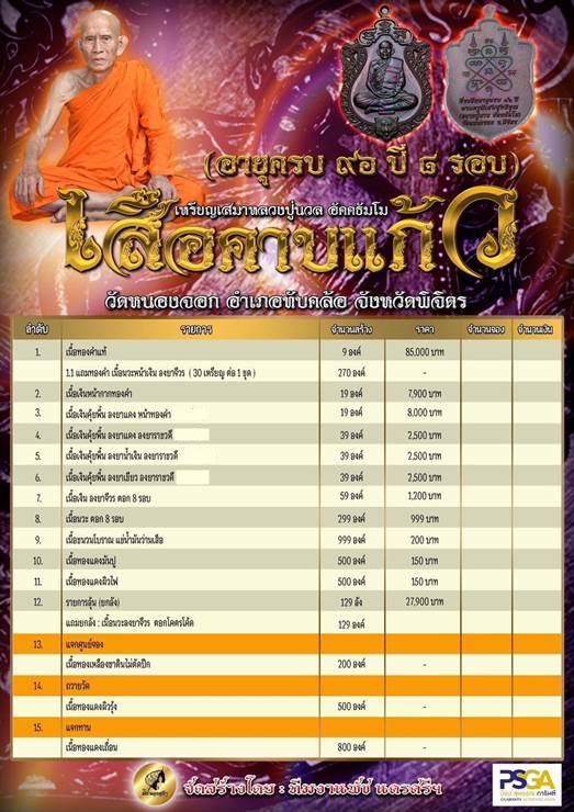 รายการ 7.เนื้อเงินลงยาจีวร ตอก ๘ รอบ ราคาจอง 1,200.-บาท มียอด = 4