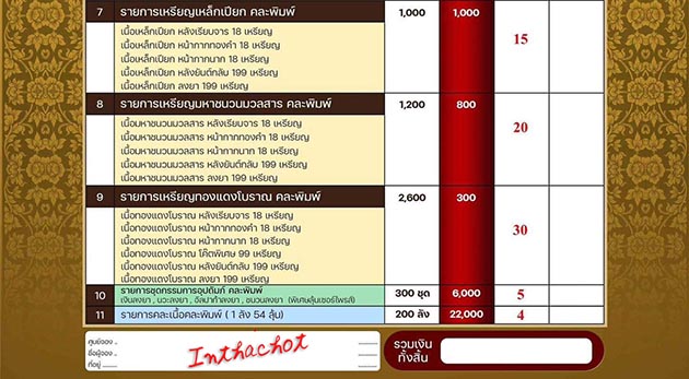 รายการที่11 คละเนื้อ คละพิมพ์ (1 ลัง 54ลุ้น) จำนวน 4 ลัง