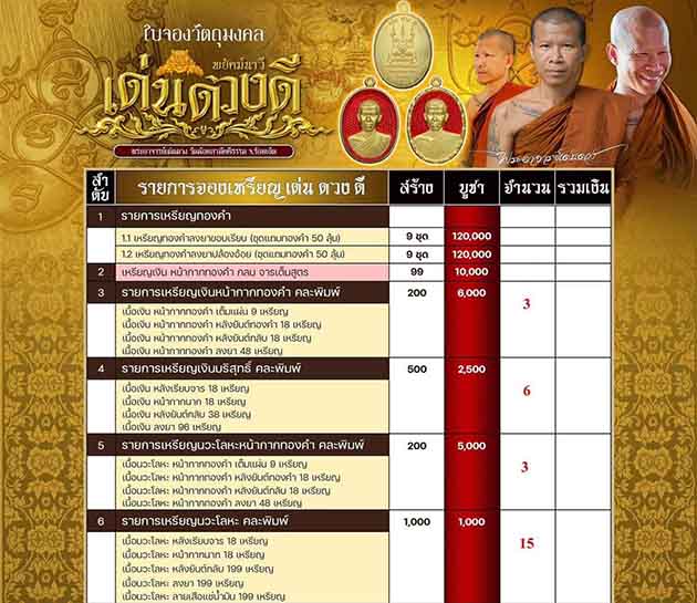 ทุกรายการเปิดราคาจอง มียอดจองดังนี้ -