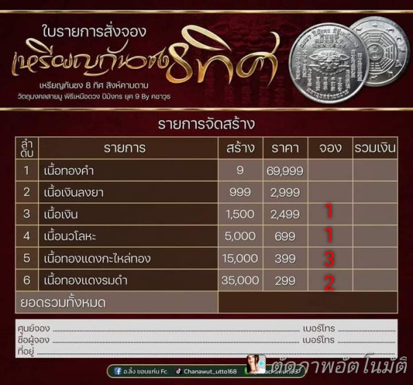รก.5 เนื้อทองฝาบาตรลงยาแดงมี1เหรียญๆละ2,000