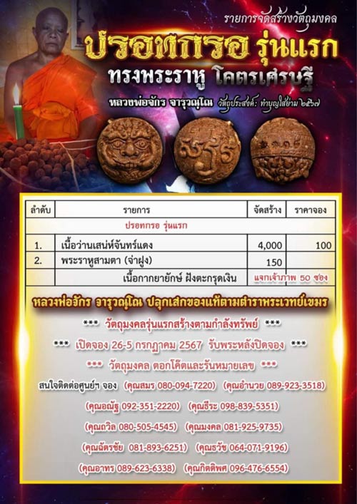 รายการ 1.เนื้อว่านเสน่ห์จันทร์แดง จอง 100 ฿ มียอด 100 ลูก