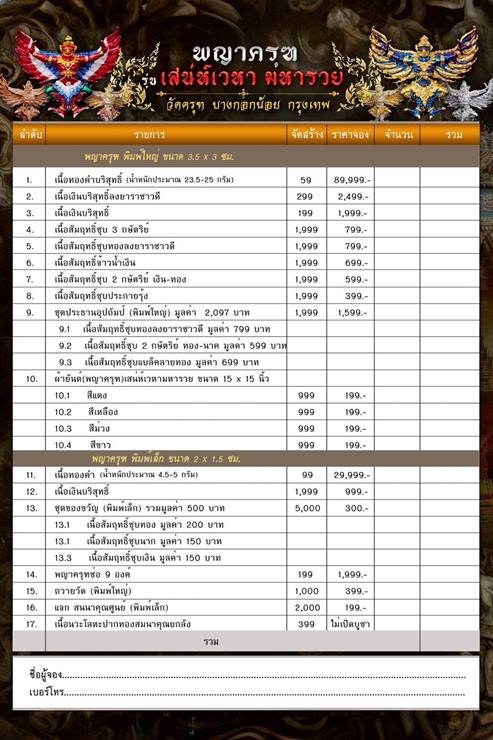 รายการ 14. พญาครุฑ ช่อ 9 องค์ ราคาจอง 1,999.-บาท มียอด= 2