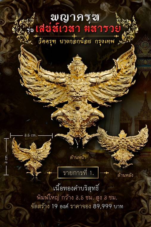 *** เปิดจอง// พญาครุฑ รุ่น เสน่ห์เวหา มหารวย วัดครุฑ บางกอกน้อย กรุงเทพฯ