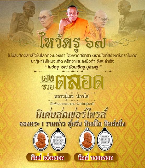 *** เปิดจอง// เหรียญ รุ่น ไหว้ครู ๖๗ เฮงรวยตลอด หลวงปู่เฮง ปภาโส วัดบ้านด่านช่องจอม จ.สุรินทร์