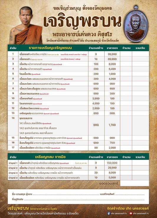 รายการ 13. เหรียญหล่อ ชนวนมงคล (ลุ้นทองคำ,ลุ้นเซอร์ไพรส์) ราคาจอง 999.-บาท มียอด= 5