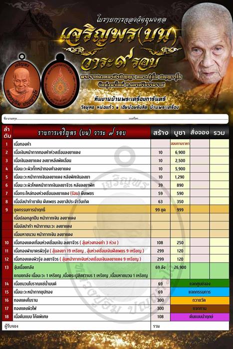 รายการ 13.ลุ้นเนื้อยกลัง (รับพระ 103 เหรียญ) ราคาจอง 26,900.-บาท มียอด= 1 ลัง