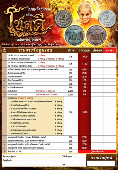 รายการ 11.ชุดของขวัญ (รับพระ 15 เหรียญ) ราคาจอง 1,999.-บาท มียอด= 10
