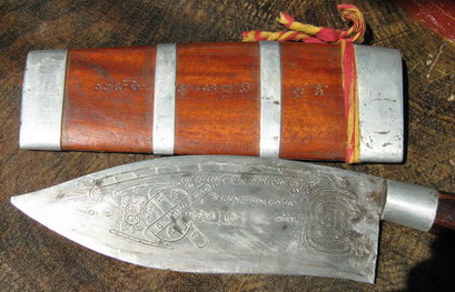เป็นมีดเล่มใหญ่ มีคนเอามาขายให้ 500บาท เข้าใจว่า เป็นของหลวงพ่อบุญมี วัดเขาสมอคอน แต่ไมเคยเห็น..(1)..ฝักมีจารย์ และ (2).ลายตอกที่ใบมีดมีหน้าคนด้วยแปลกๆครับ..จึงรบกวนสายตรงถามว่า