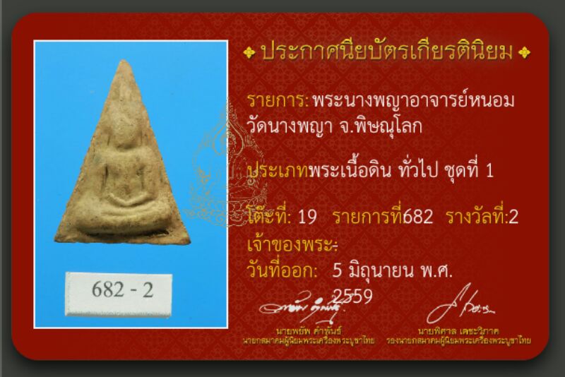 ติดรางวัลที่ 2 เมื่อวันที่ 5 มิ.ย.59 งานใหญ่ของสมาคมพระเครื่องพระบูชาไทย