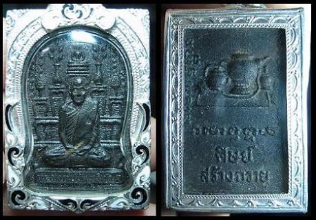 เนื่้อพระสีดำ เวลาส่องดูเนื่อพระจะมีแสงระยิบระยับทั่วทั้งองค์พระ และมีเศษจีวรผสมรวมอยู่ด้วยครับผมเช่ามาแต่ไม่ทราบวัดว่าวัดไหนสร้าง จึงขอรบกวนท่านผู้รู้ โปรดช่วยสงเคราะห์ด้วยครับ ขอบพระคุณอย่างสูงยิ่งครับ ทุก ๆ ท่าน  |