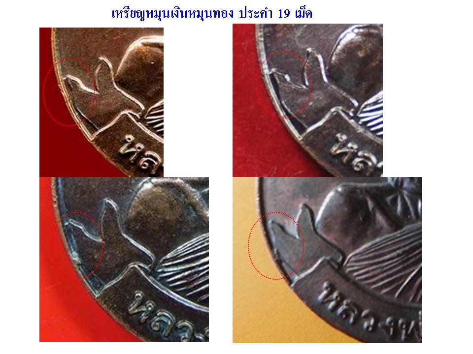 ของผมมีเหรียญ19เม็ดหนา3-4เหรียญตรงที่พี่ปูวงไว้ผมว่าเป็นเพราะบล็อคแตกนะครับผมเทียบตัวตัดแล้วก็ตัวตัดเดียวกันครับ. ในภาพเหรียญ19เม็ดบล็อคแตกกับเหรียญ18เม็ดก็ตัวตัดเดียวกันครับ