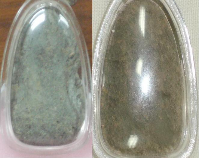 ไม่ทราบว่ากรุไหนแท้หรือไม่ กว้างประมาณ 1.5 เซ็น สูง 3 เซ็น เนื้อดินสีดำสีคล้ำ องค์พระไม่ใหญ่ขนาดอ้วนประมาณนิ้วชี้นิ้วนาง พิม์นาคปรก แต่ค่อนข้างตื้น หลังเบี้ย (นูน) ไม่มีรอยนิ้วมือ ผมเองคุ้นๆอยู่แต่นึกไม่ออกซักที ถ่ายรูปไม่ค่อยชัดนะครับ กล้องมันเจาะเข้าพลาสติกไม่ได้ แล้วพิมพ์ตื้นด้วย พอทราบกรุหรือชี้ขาดแท้เก๊ได้ก็รบกวนขอความรู้จากพี่ๆด้วยครับ |
