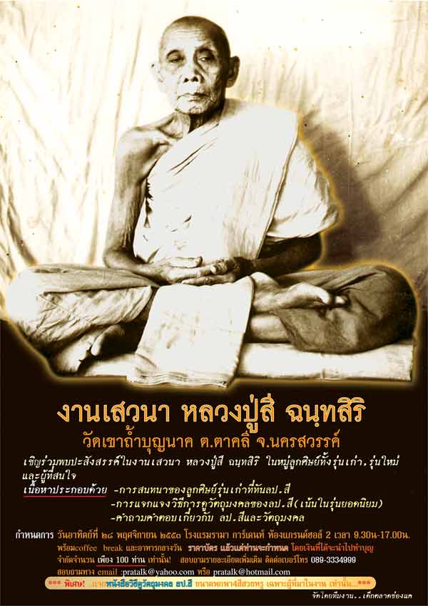 | หัวข้อกระทู้ : แจ้งความคืบหน้างานเสวนา หลวงปู่สี ฉนทสิริ (กำหนดการจัดงาน) |