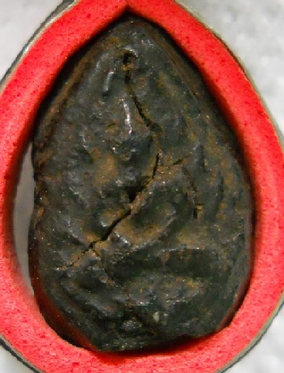 เป็นพระเนื้อผงยาผสมครั่งครับ มีรอยรานด้านหน้า ไม่ถึงกลางเนื้อใน แต่ไม่ใช่รอยแตกแน่นๆครับ ในพานที่เก็บมีปิดตาเมฆพัตร ล.ป.บุญ แล้วก็เหรียญเจ้าสัว ล.ป.เพิ่ม แล้วก็สายนครปฐมอีกหลายองค์ครับ รอกวนผู้รู้ช่วยดูให้หน่อยครับ ว่าใช่สายวัดกลางหรือเปล่าครับถ้าไม่ใช่เป็นของที่ไหนครับ