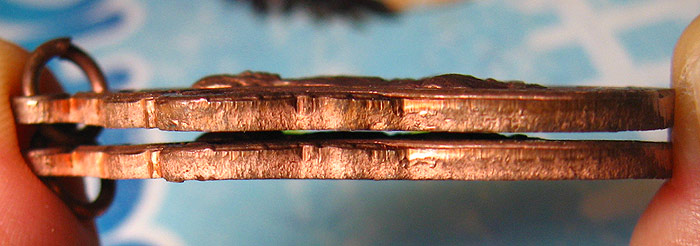 แล้วอีกอย่างที่สำคัญมาก ก็คือตัวตัดข้างเหรียญ คุณ pinmarine35...ลองเปรียบเทียบตัวตัดข้างดูนะครับ ถ้าตัวตัดเหมือนเหรียญที่ลงในรูป น่าจะแท้ ,แต่ตัวตัดไม่เหมือน และข้างศรีษะของหลวงพ่อคูณ ไม่มีเส้นขนแมวเล็ก ผมก็ว่าน่าจะเป็นเหรียญเก๊นะครับ...( ดูเหรียญจริงชัวร์ที่สุดครับ )  |