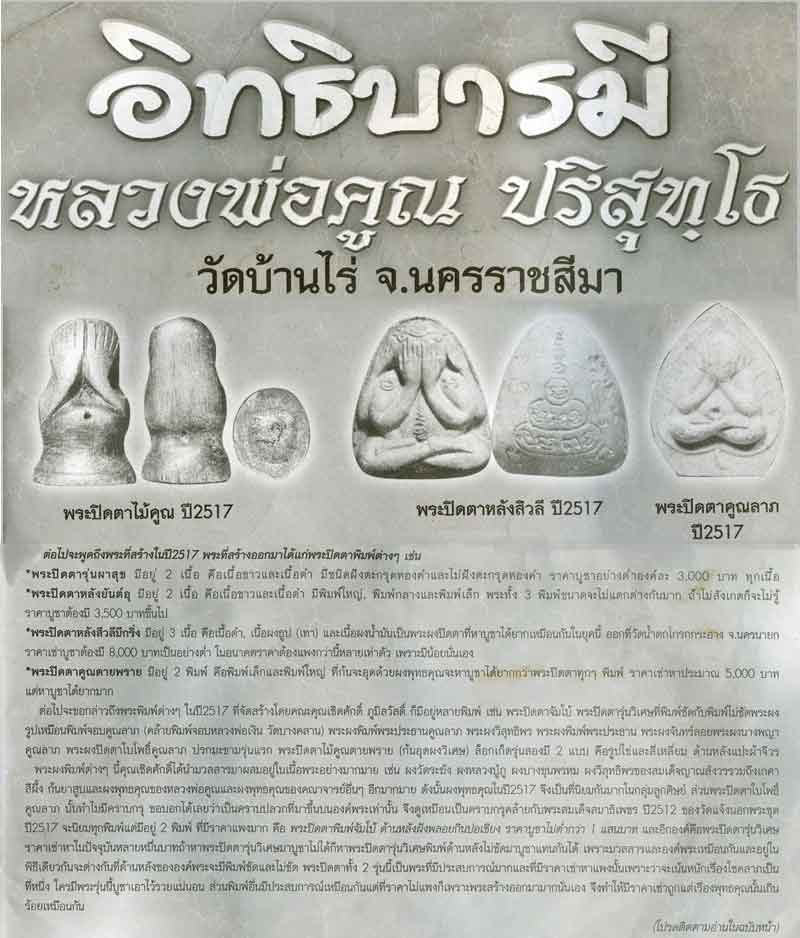 มีข่าวกรุแตกครับพระธาตุที่วัดน้ำตกกะอาง จ.นครนายก จะทำการบูรณะใหม่ แล้วเกิดพบพระปิดตาตกค้างอยู่ประมาณ 300 องค์ ปี 17 เนื้อผงทั้งสามพิมพิ์ครับทางวัดให้บูชาองค์ละ 8000 บาท ใครต้องการรีบไปเลยนะครับ  |