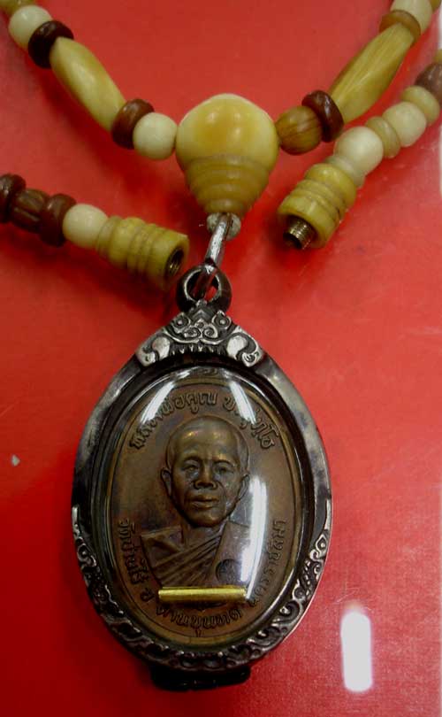 วันก่อนได้มีโอกาสไปกราบหลวงพ่อคูณที่วัด...คงเป็นความโชคดีของผมกกับเพื่อนอีกคนหนึ่งที่ไปด้วยกัน ตอนนั้นก็เย็นมากแล้ว หลังจากกราบท่านเสร็จแล้ว ก็นั่งดูท่านสักพัก อยู่ๆ ก็มีผู้ใหญ่ใจดีคนหนึ่งเอาพานมาให้ ก็เลยถอดพระออกจากคอใส่ในพาน 2 องค์ มี 17 องค์นี้กับ สังกัจจายปี 33 เนื้อเงินอีกองค์ และเขาก็เอาไปให้หลวงพ่อ ปลูกเสกอธิฐานจิตให้สักพักใหญ่..ไม่คิดมาก่อนเลยว่าตัวเองจะมีโอกาศให้ท่านปลุกเสกเหรียญนี้อีกรอบ คงเป็นบุญวาสนาของผมกระมั่ง ยังปลื้มยังดีใจไม่หายเลยจนถึงทุกวันนี้ มันไม่ใช่เรื่องง่ายๆน่ะครับ ที่หลายๆคนจะมีโอกาสแบบนี้.. วันนี้ก็เลยเอามาโชว์เพื่อนๆสมาชิกให้อิจฉากันเล่นๆครับ องค์นี้ ให้เท่าไหร่ก็ไม่ปล่อย...ขอห้อยไว้ที่คอแบบนี้ตลอดไป...อีกเมื่อไหร่ผมถึงจะมีโอกาสแบบนี้อีกก็ยังไม่รู้... |