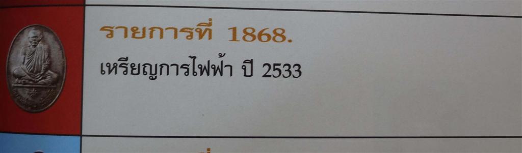 ก่อนอื่นต้องขอชมเชยการจัดทำสุจิบัตรงานประกวดที่จะมีที่ รร.นายร้อย อ. สามพราน..ว่าเยี่ยมยอดมากครับ.... ขอสอบถามรายการที่ 1868 เหรียญการไฟฟ้า ปี 2533 รุปที่ลงเหรียญรูปไข่นี้น่าจะเป็นปี 2537 มากกว่า..เหรียญที่ศิษย์การไฟฟ้าภูมิภาคสร้าง น่าจะเป็นเหรียญหล่อใบโพธิ์ มากกว่านะครับ... เพื่อความชัดเจนโปรดชี้แนะครับ..จักเป็นพระคุณอย่างยิ่งครับ.. |