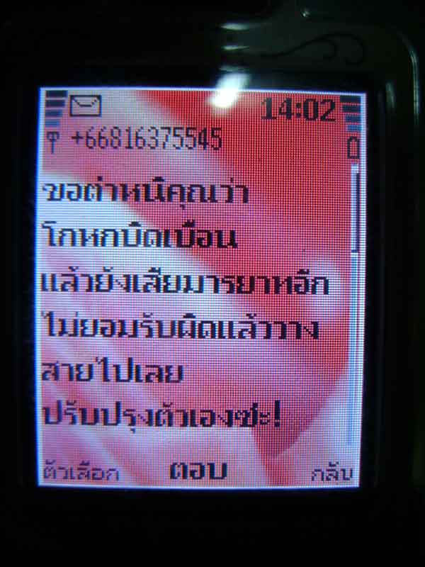 และอีก2-3 วันถัดมาก็ได้รับโทรศัพท์จากชายลึกลับอีกทีนี้โทรมาต่อว่าขมขู่จนผมกลัวว่าติเข้าทำไมเพราะอะไรผมจึงชี้แจ้งตามข้อมูลขั้นต้นแต่พี่เค้าไม่ฟังก็ยังต่อว่าอีกไม่ฟังเหตุผลให้ผมแจ้งเวบลบคำติให้ได้ไม่อย่างนั้นจะ...จนผมกลัว