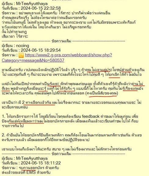 เพราะไม่มั่นใจ ในพระแท้ แต่กิริยา โทรมาต่อว่าโน่นนี้นั่นเสร็จและยังอินบล็อกมาต่อว่าโน่นนี่นั้น