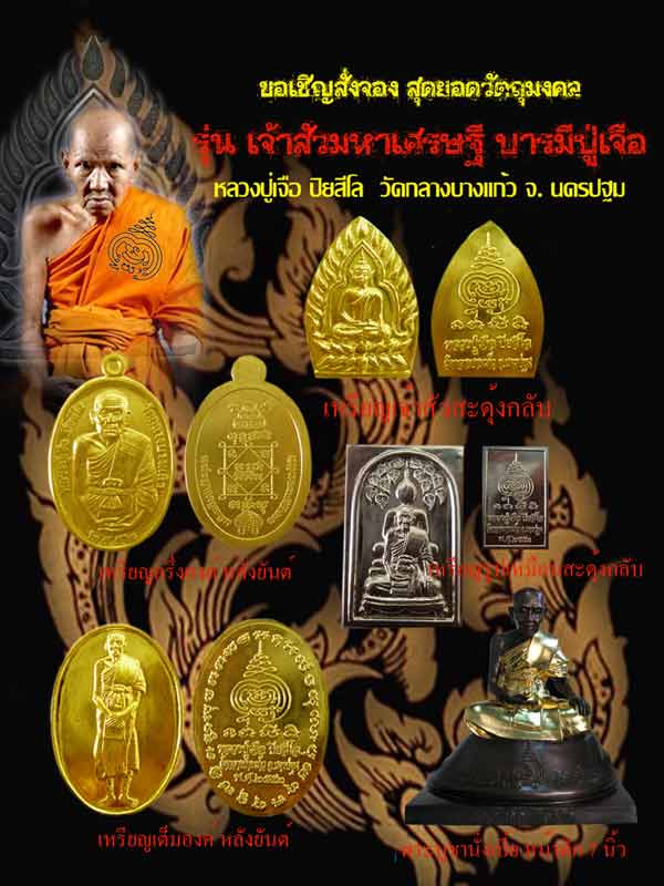1.พระบูชาหลวงปู่เจือสะดุ้งกลับ นั่งเบี้ย หน้าตัก ๗ นิ้ว จำนวน 299 ชุด ราคา 12000 บาท