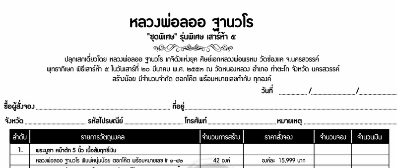 พระบูชา หน้าตัก5นิ้ว หลวงพ่อลออ ฐานวโร วัดหนองหลวง เสาร์ห้า ปี2553