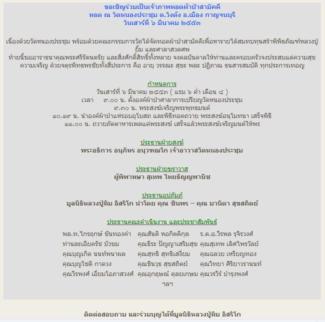ขอเชิญร่วมเป็นเจ้าภาพทอดผ้าป่าสามัคคี วัดหนองประชุม กาญจนบุรี สร้าพิพิธภัณฑ์หลวงปู่ยิ้ม และศาลาสวดศพ