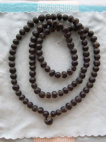 พึ่งได้มาครับ ตอนแรก เห็นเป็นประคำ เนื้อเก่า ๆ ส่องไป ส่องมาโดนครับ เป็นประคำผงยา หลวงปู่บุญ นับได้ 108 เม็ด แต่น่าเสียดาย แตกไปหนึ่งเม็ด แต่ก็ทำให้เห็นเนื้อแท้ แข็งมาก ๆ กดไม่แตกเลยครับ รวมไปถึงเห็นแกน เป็นตะกรุดสอด เพื่อทำเป็นแกน คล้าย ๆ เงิน หรือ ตะกั่ว เก่าจนขึ้นไขครับ แต่เนื้อผงยา ส่องมันส์มากครับ
