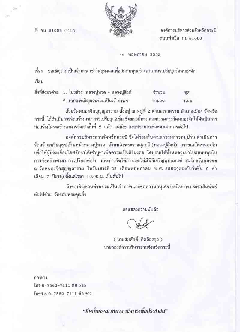 พรุ่งนี้ (๒๒ พค. ๒๕๕๓) วัดหนองจิก ได้จัดทำพิธีสมโภชวัตถุมงคล หลวงปู่ทวด - หลวงปู่สิงห์