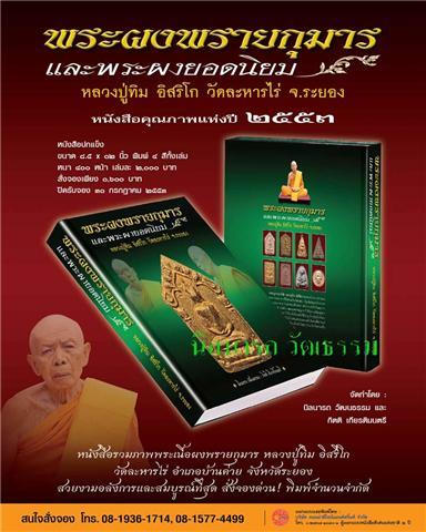 ขอเชิญร่วมสั่งจองหนังสือ "พระผงพรายกุมารและพระผงยอดนิยม หลวงปู่ทิม อิสริโก วัดละหารไร่ จ.ระยอง" หนังปกแข็งอย่างดีขนาด 8.4 นิ้ว X 12 นิ้ว จัดพิมพ์และออกแบบโดย บ.คอมม่า ดีไซน์แอนด์พริ้นท์ ซึ่งได้รับรางวัลผู้ออกแบบหนังสือดีเด่น 2 ปี ภายในตัวหนังสือได้รวบรวมพระผงพรายกุมารของหลวงปู่ทิมและพระผงที่ออกต่างวัดปลุกเสกโดยหลวงปู่ทิม