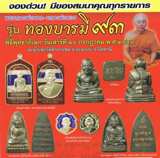 พิธีพุทธาภิเษก วันเสาร์ที่ ๒๔ กรกฎาคม ๒๕๕๓ นี้แล้ว หลวงปู่ทวด-หลวงพ่อทอง รุ่น "ทองบารมี ๙๓