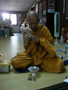 ได้นำฝังพลอยเสก ที่ท่านเจ้าคุณนร วัดเทพศิรินทร์ ได้อธิษฐานจิตและได้มอบให้ไว้ บรรจุพระกริ่งทุกองค์ ตะกรุดทองคำ ตะกรุดเงิน จารมือ ด้วยคาคามหาลาภอริยทรัพย์ไว้ทุกองค์