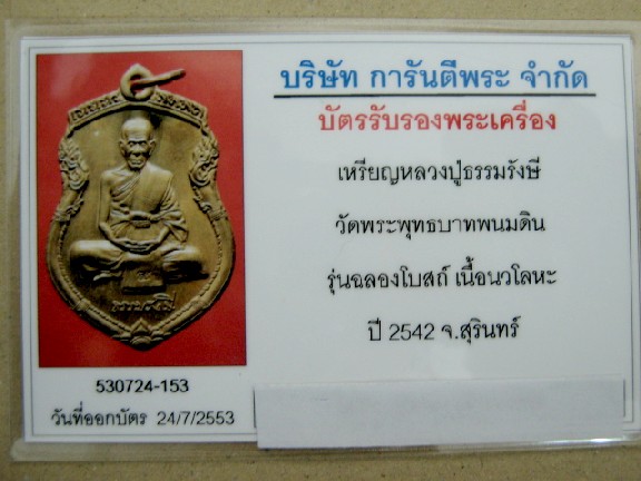 สำหรับเหรียญ หลวงปู่ธรรมรังษี วัดพระพุทธบาทพนมดิน จ.สุรินทร์ ทางเวป G-PRA สามารถออกบัตรรับรองได้แล้วครับ ในส่วนของผมที่ส่งออกบัตรมีอยู่2รุ่นครับ