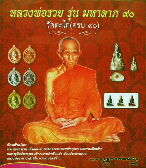 รูปแบบวัตถุมงคลหลวงพ่อรวย วัดตะโก จ.พระนครศรีอยุธยา "รุ่นมหาลาภ ๙๐" (ฉลองแซยิด ๙๐)