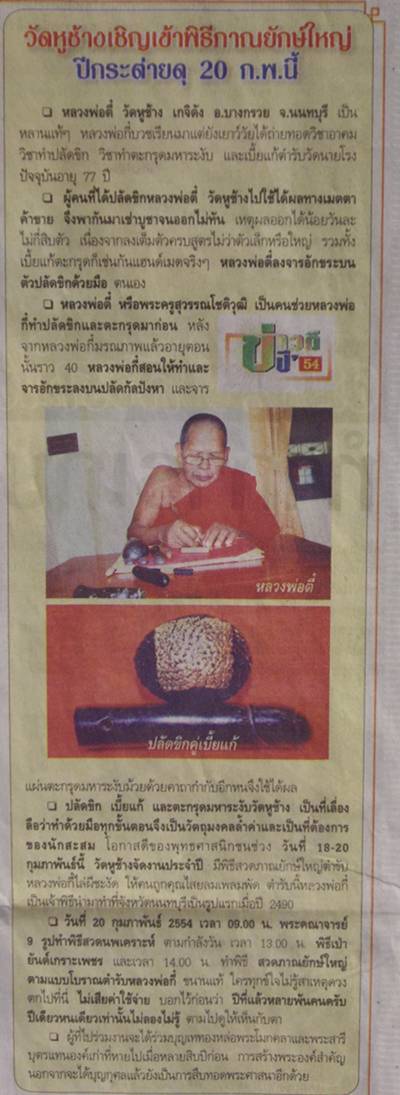 คลัมน์ : ข่าวดีปี 54 : วัดหูช้างเชิญเข้าพิธีภาณยักษ์ใหญ่ปีกระต่ายดุ 20 ก.พ.2554 นี้