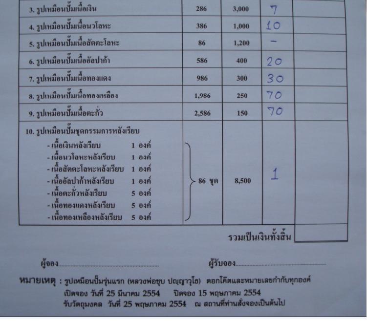 สรุปยอดจองรูปเหมือนปั๊มรุ่นแรก หลวงพ่อชุบ วัดวังกระแจะ กาญจนบุรี
