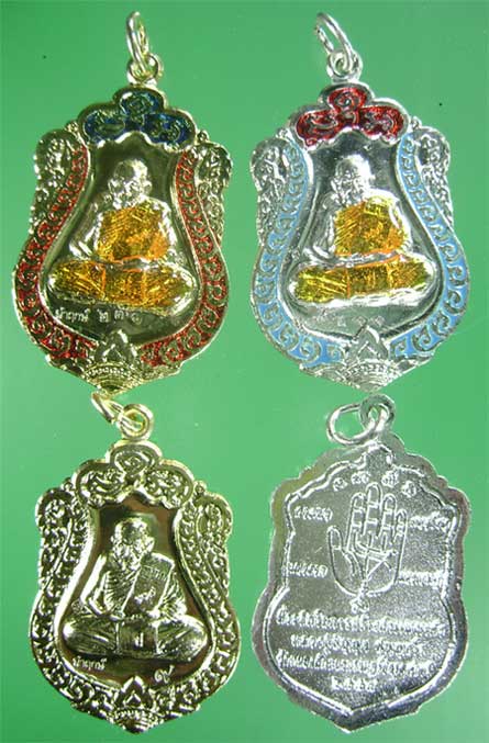 1.เหรียญกะหลั่ยทองลงยา 3 สี สร้าง 900 เหรียญ บูชา 800 บาท (ตอกโค๊ดและหมายเลข)