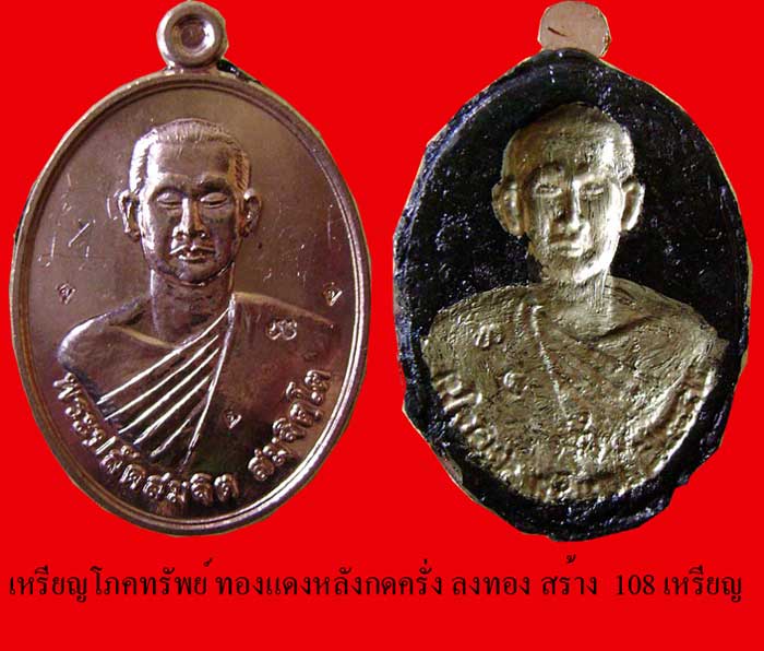 4. เนื้อทองแดง (หลังกดครั่ง ลงทอง ) สร้าง 108 เหรียญ