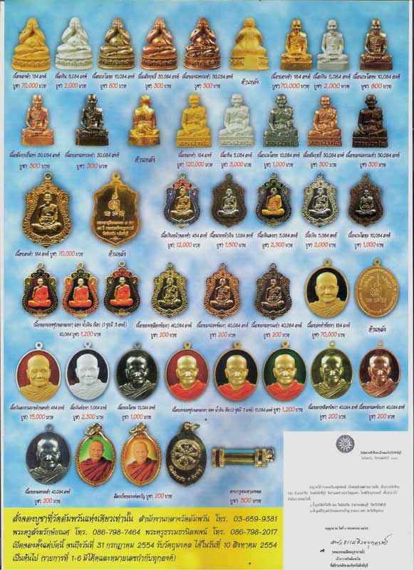 ***ใบโบว์ชัวร์จองพระหลวงพ่อจรัญ วัดอัมพวันรุ่น ครบ อายุ 84 ปี ครับ ***ร่วมทำบุญจองพระชุดนี้ ได้บุญกุศลแน่นอน เพราะเงินเข้าร่วมกองทุนค่าน้ำ ค่าไฟ ค่าอาหารและสาธารณูปโภควัดอัมพวัน ซึ่งมีค่าใช้จ่ายในแต่ละเดือนหลายแสนบาท เนื่องจากมีผู้มาเข้ากรรมฐาน ที่วัดทุกวัน ประมาณ วันละเป็นพันคน จึงขอบอกบุญทุกท่านให้ได้ร่วมสร้างบุญ สร้างกุศลกันในครั้งนี้ สามารถ จองพระรุ่นนี้ได้ที่กุฏิหลวงพ่อจรัญ วัดอัมพวันที่เดียว ( โครงการนี้เป็นการร่วมแรงร่วมใจกันของพระที่วัดอัมพวัน ที่เห็นหลวงพ่อได้เหน็ดเหนื่อยสร้างคน ให้ได้ปฏิบัติธรรม และแบกค่าใช้จ่าย ทั้งค่าอาหาร น้ำไฟ จึงช่วกันจัดสร้างพระ และขออนุญาติหลวงพ่อเรียบร้อยแล้ว ซึ่งหลวงพ่อจะได้ทำอธิษฐานจิตให้อีกครั้งประมาณเดือนสิงหาคมครับ ) |