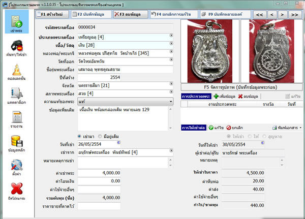 โปรแกรมรวมพระ โปรแกรมบริหารจัดการพระเครื่องส่วนบุคคล
