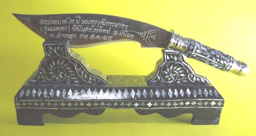 มีดหมอเล่มนี้หลวงพ่ออาบท่านปลุกเสกเสร็จพิธีแล้ว ท่านก็บอกพระครูประเสร็ฐ ให้เก็บมีดเล่มนี้ไว้ให้ผม ถ้าวันไหนผมมาที่วัดก็ให้มอบให้ผม มีดรุ่นนี้ฉลอง 72 ปีหลวงพ่ออาบ (รุ่นเมตตา) 12 ส.ค.2549 สร้างน้อยแล้วก็หมดจากวัดอย่างรวดเร็ว นี่แหละคือความเมตตาที่หลวงพ่อมีต่อผม เวลาผมมีปัญหาอะไรที่แก้ไม่ตกคิดไม่ออกก็จะไปบอกหลวงพ่อกลับมาแล้วก็สบายใจครับ ท่านคือพระในดวงใจของผม (ยุคปัจจุบัน)