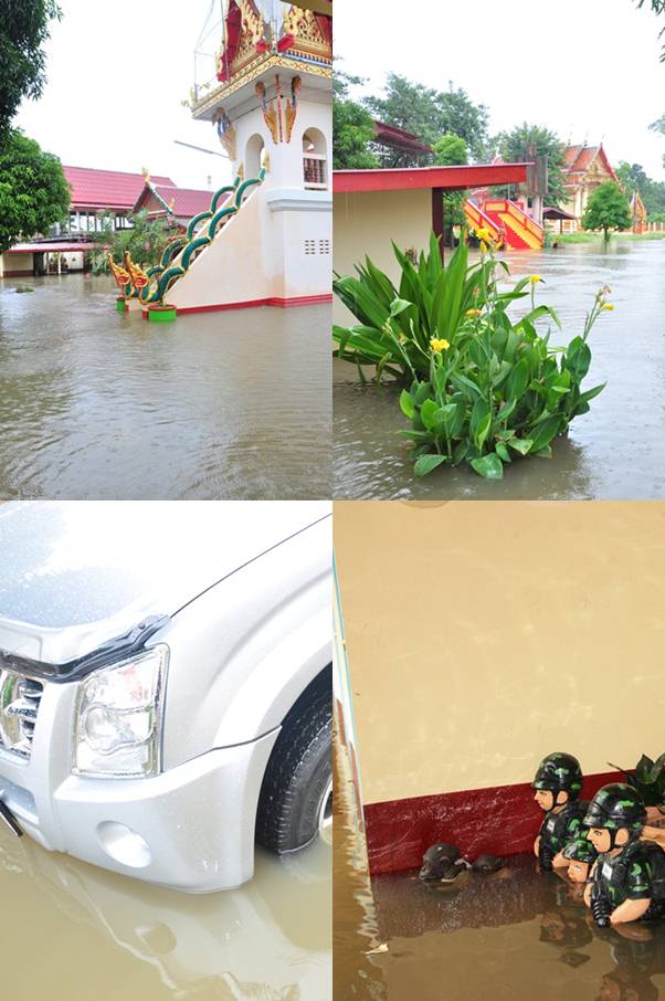 ปล.ภาพที่นำมาให้ชมเป็นของวันที่ 21 กันยายน 2554 ซึ่งได้รับทราบจากวัดว่า "ปัจจุบันน้ำได้สูงกว่าภาพที่เห็นมาก"